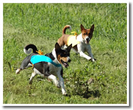The Basenji's distinctive sound of happiness fairly thrills one, yet it's a sound hard to describe. It is somewhere between a chortle and a yodel. However, he is usually very happy when he makes it and one can't help but share the happiness with him.